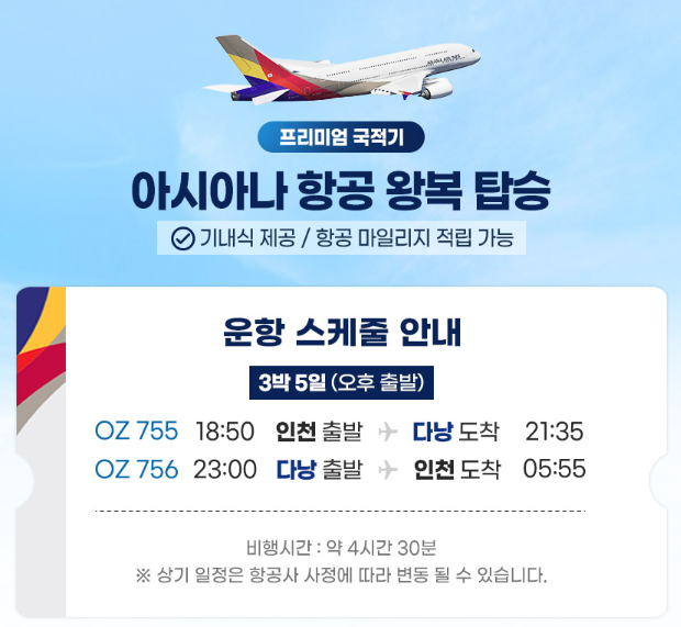 (리턴) OZ756 다낭 출발 23:00 - 인천 도착 05:55(+1)