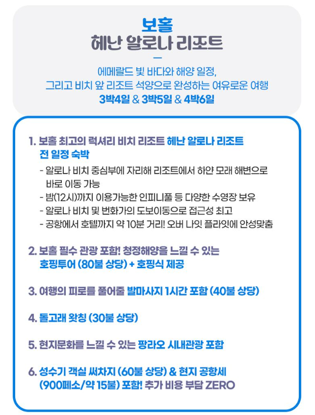 ✔️보홀 최고의 럭셔리 비치 리조트 헤난 알로나 리조트 전 일정 숙박