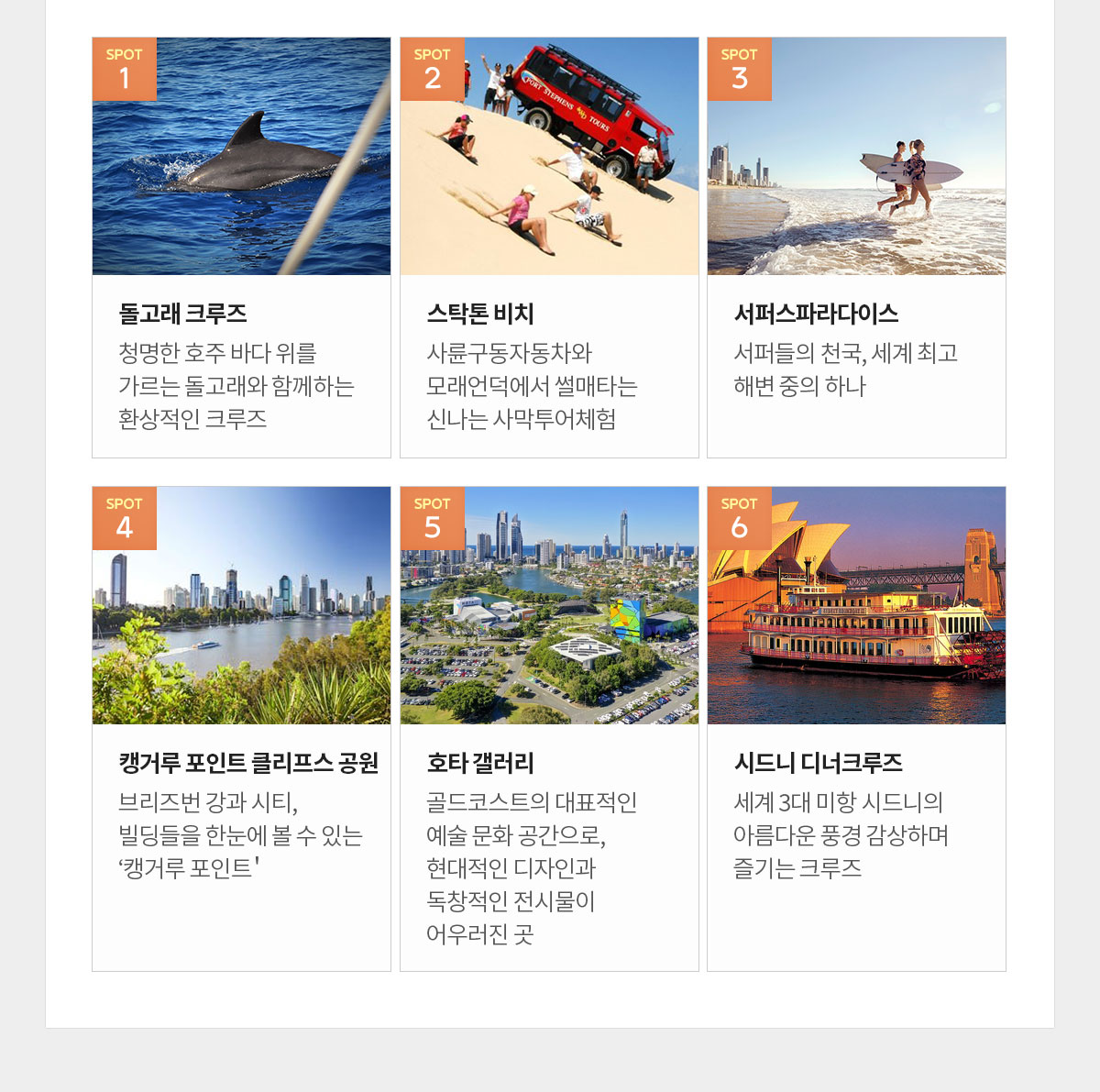 - 세계 3대 미항 ‘시드니’ , 서퍼들의 천국 ‘골드코스트’ , 호주속의 유럽이라 불리는 낭만적인 도시 ‘브리즈번’