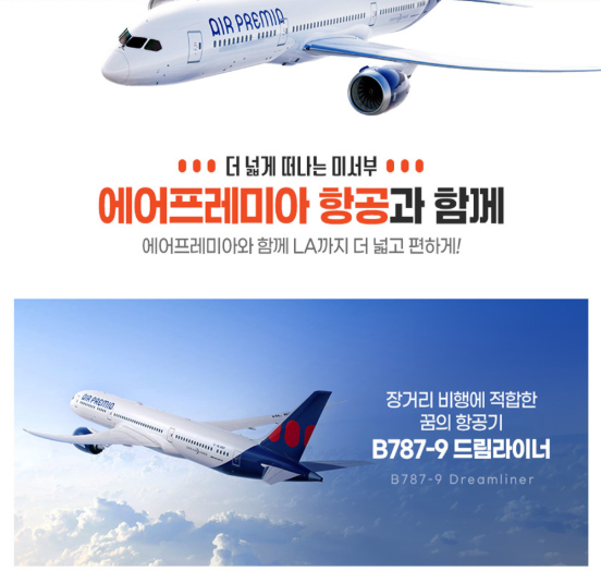 - 도착편 : YP104 로스앤젤레스 23:30 - 인천 04:50+2일 (비행소요시간 약 13시간 20분)