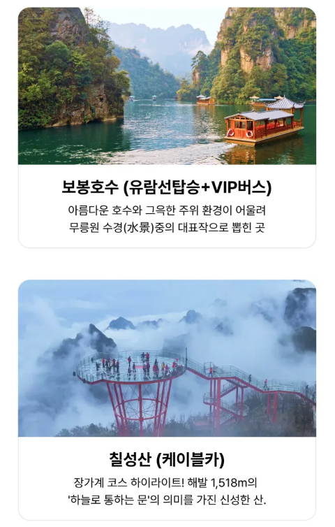 - 칠성산, 원가계, 양가계, 십리화랑, 금편계곡, 보봉호VIP코스