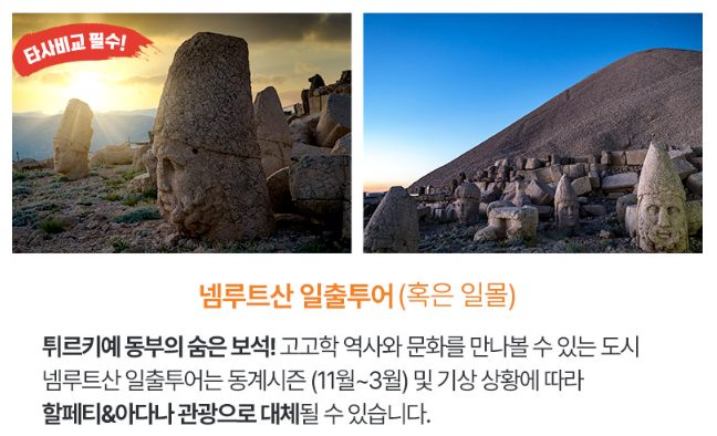 호텔조식 후 → 넴루트산 이동/관광→ 카파도키아 이동(데브란트, 괴레메등) → 호텔