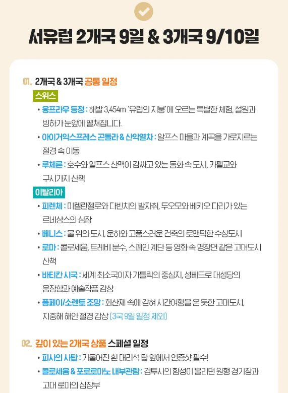 숙박지 : 로마 2박-베니스 1박-밀라노 1박-인터라켄 1박-파리 2박(9일일정)