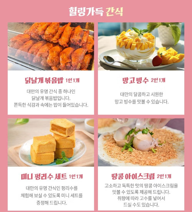 ✅일정 중에 제공되는 다양한 대만의 간식거리(5종 제공)