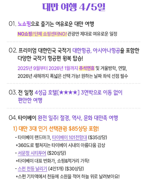 | [홈앤쇼핑]다채로운 볼거리와 특색있는 간식거리로 즐기는 대만여행 (0) | 2025.08.28 |