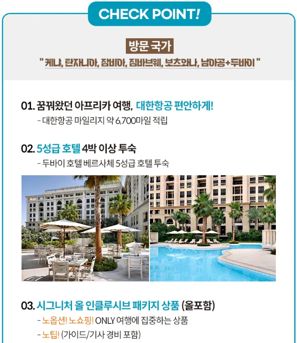 아프리카 6국+두바이 15일 <7대 Real사파리/빅토리아폭포/5성호텔/테이블마운틴/두바이베르사체호텔>