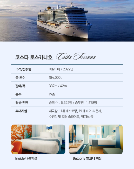 [식사] 조식: 선내식 / 중식: 선내식 / 석식: 선내식 [숙소] 코스타 크루즈