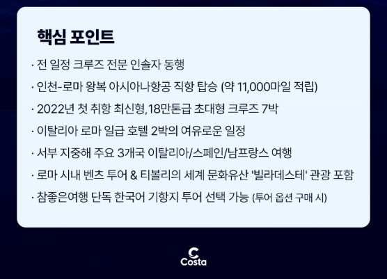 서부지중해 크루즈 3~4개국 10~11일 #코스타 크루즈