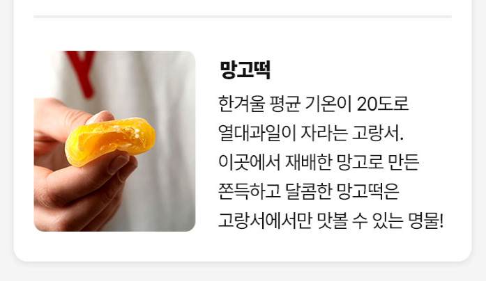 고객 혜택 하문의 대표적 먹거리 망고떡 + 망고주스 + 창펀 (1인 1개) 증정