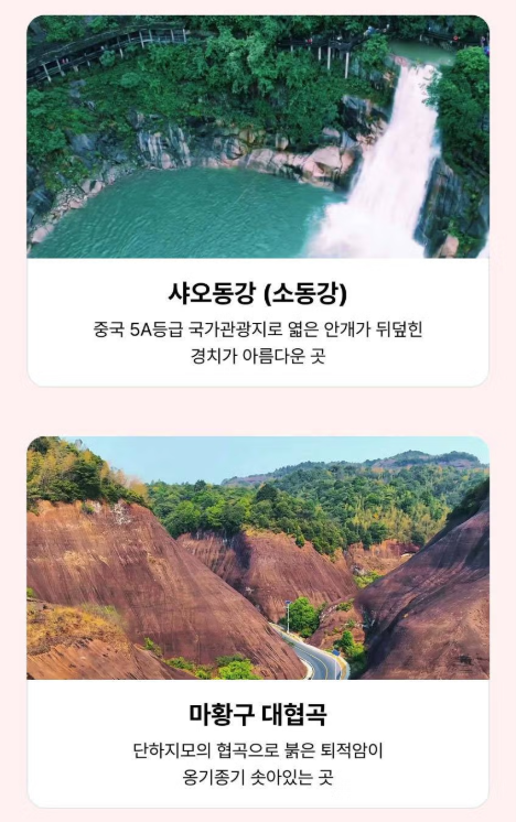 -망산오지봉, 운문산 풍경구, 단하산 풍경구, 고의령, 마황구대협곡, 봉림소진 등