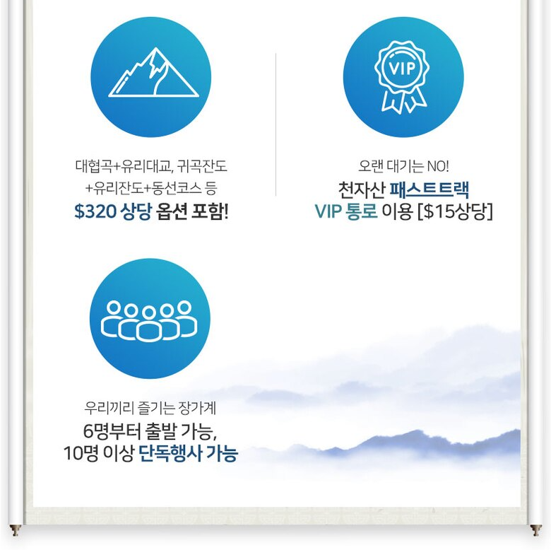 ⑥ 우리끼리 소중한 추억! 6명부터 출발, 10명 이상 예약시 단독행사 가능