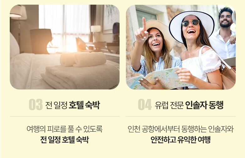 - 가이드/기사 경비 인당 130유로 현지 별도 지불 (20명 미만 진행 시 인당 40유로 추가, 성인/아동 동일)