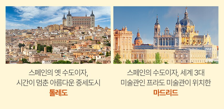 - 마드리드 : 마드리드 왕궁과 세계 3대 미술관인 프라도미술관이 있는 스페인의 수도