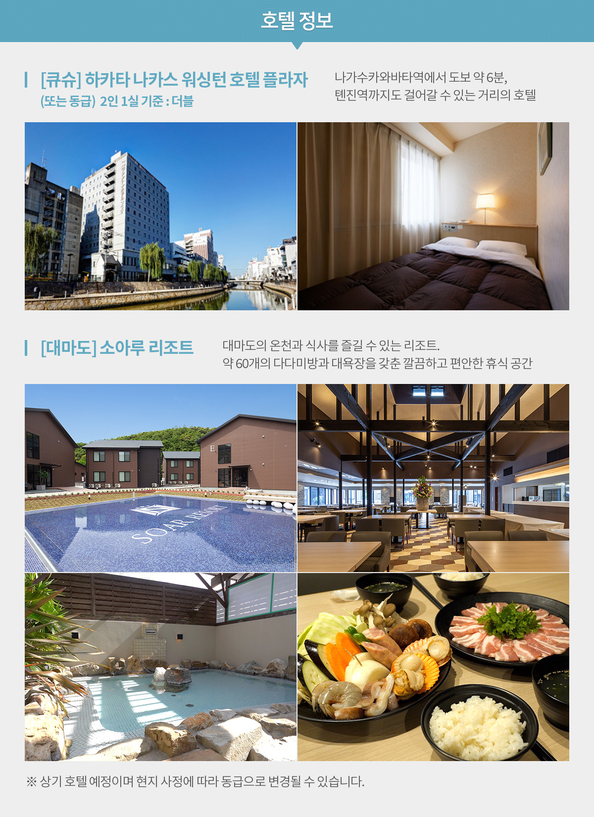 *호텔 : 하카타 나카스워싱턴 호텔 플라자 또는 동급 (예정)