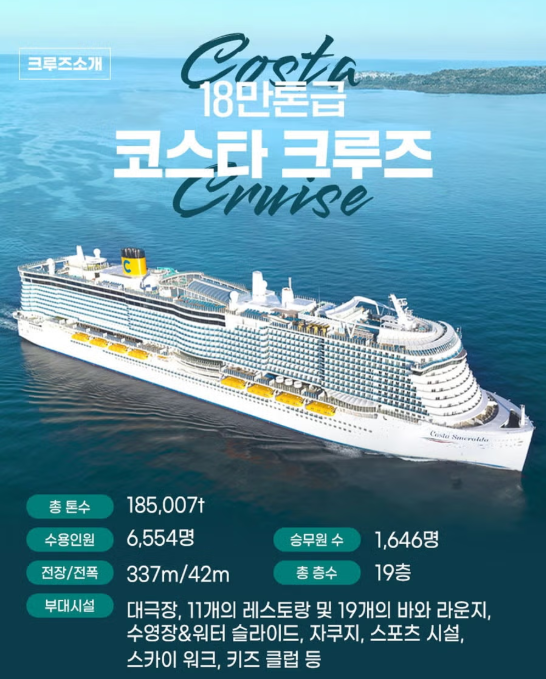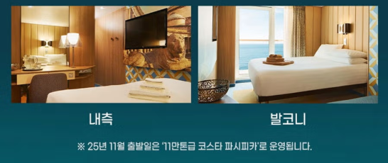 - 11월 출발 시, 코스타 파시피카호 탑승 / 이외 코스타 스메랄다호 탑승