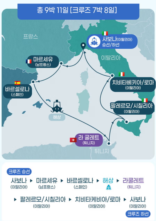 💚지중해4개국 크루즈여행 살펴보고 예약하기 - 모바일버전💚