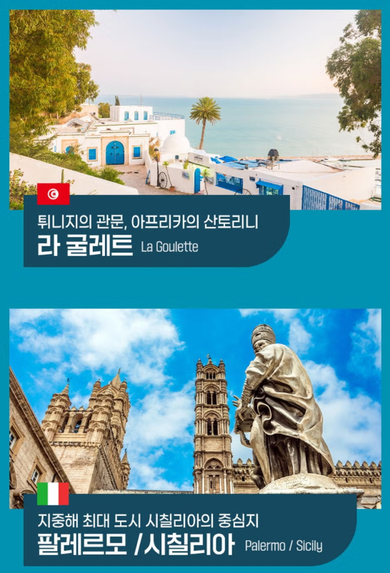 POINT ③ 크루즈니까 가능한 지중해+튀니지 4개국 여행