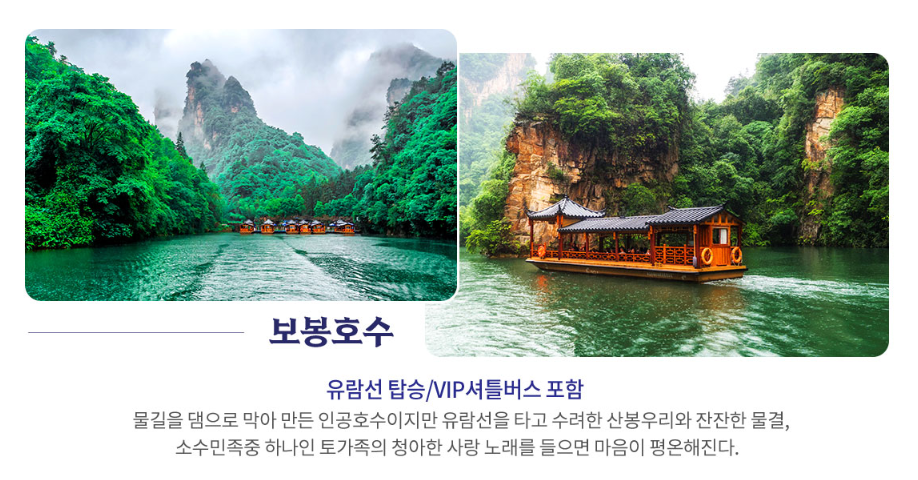 보봉호유람(유람선+VIP셔틀탑승) : 장가계의 비취 반자연, 반인공의 거대한 보봉호수
