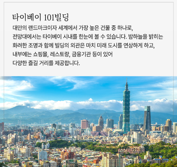 옵션가 US$35 상당의 타이베이 대표 명소 101빌딩 포함