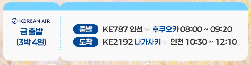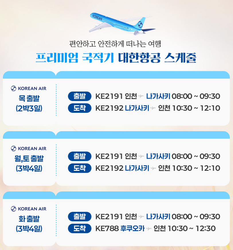 3) 3박4일 : 인천-나가사키 / 후쿠오카-인천 (화 출발)