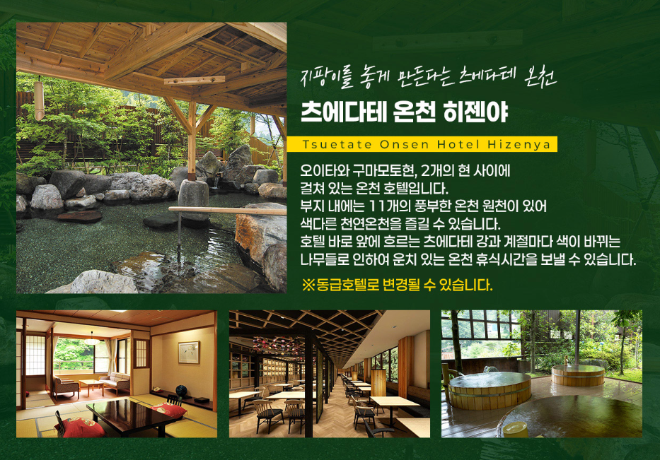 - 온천 이용시간 : 15:00~23:00、6:00~10:00 (*현지사정에 따라, 변경 될 수 있습니다)