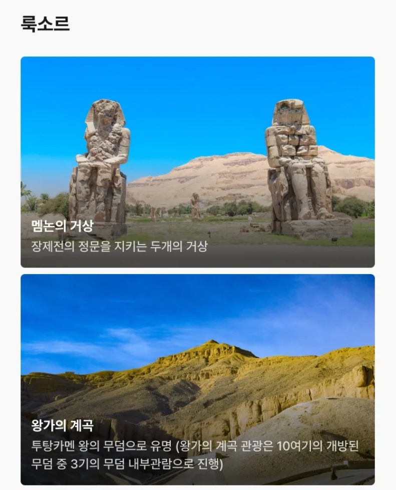 ※왕가의 계곡 관광은 10여기의 개방된 무덤 중 3기의 무덤 내부관람으로 진행합니다 .