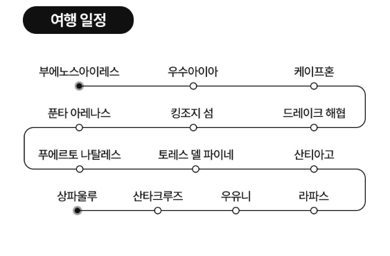 * 푼타아레나스(or 푸에르토나탈레스)-산티아고 항공편 운항이 유동적이므로 항공스케쥴에따라 다른 투어로 대체될 수 있습니다.