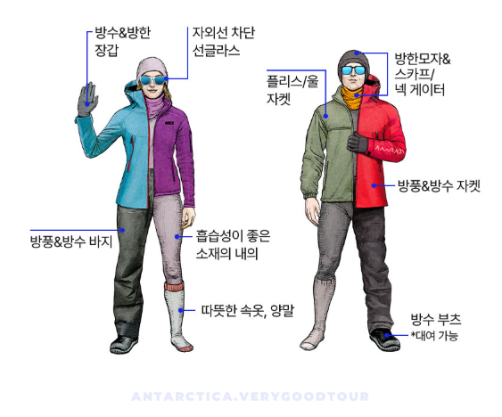 ① 왕복 항공권 (남극 일정 시, 중간항공 포함)