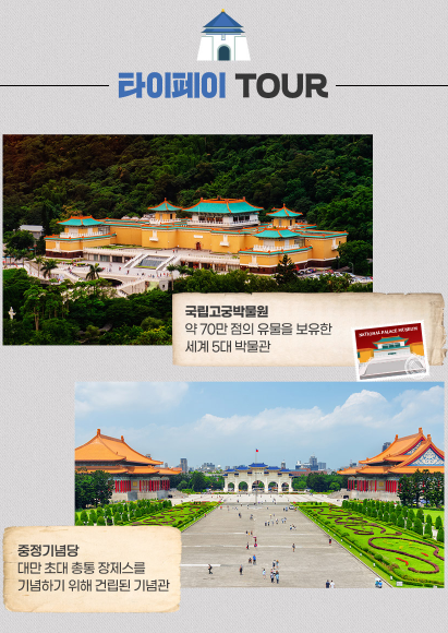 호텔 조식 - 고궁박물원 - 중정기념당 - 공항으로 이동 - 타이베이 출발 - 인천 도착
