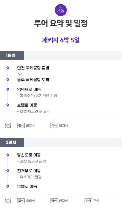 인천공항출발 광주공항도착 가이드 미팅 영덕으로 이동 (약 2시간 소요) 봉림소진/동천선경 관광 호텔로 이동 (약 2시간 소요) 호텔 체크인 후 휴식