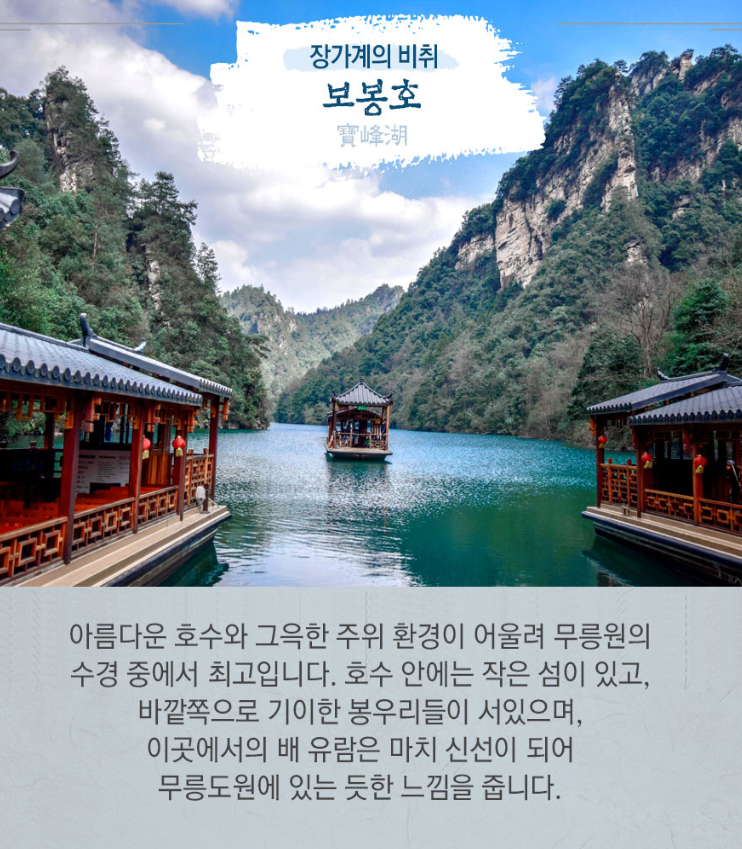 ▶ 옥색물이 고인 호수와 천하폭포 등 장가계의 비경을 볼 수 있는 대협곡