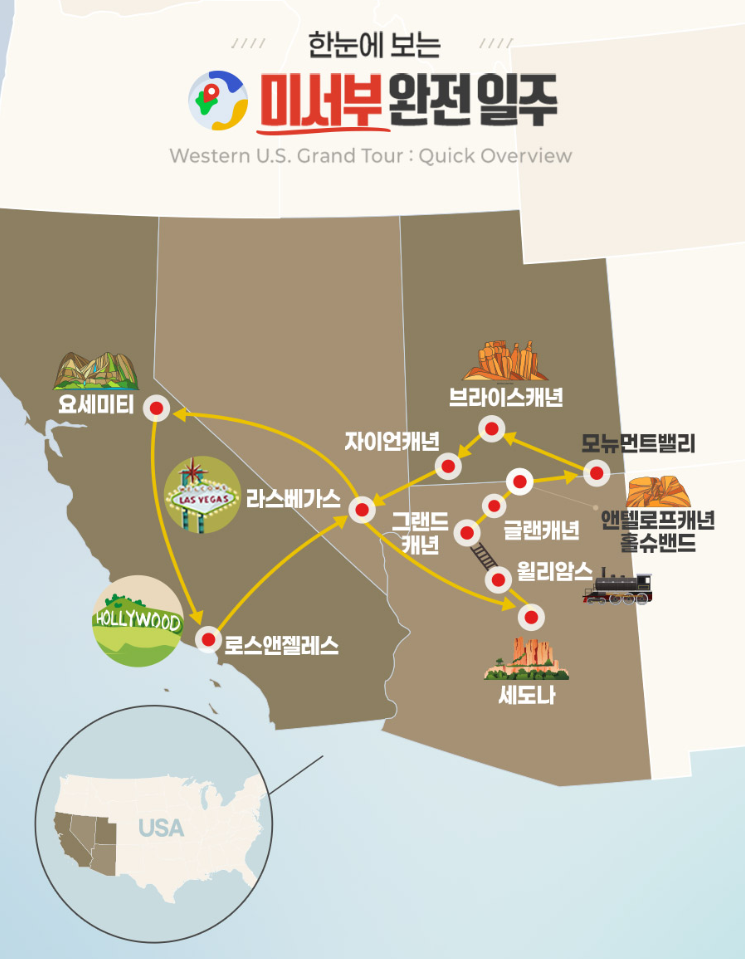 ※ 미서부 10일 여행 일정 자세히 살펴보고 직접 예약하기 (PC버전)