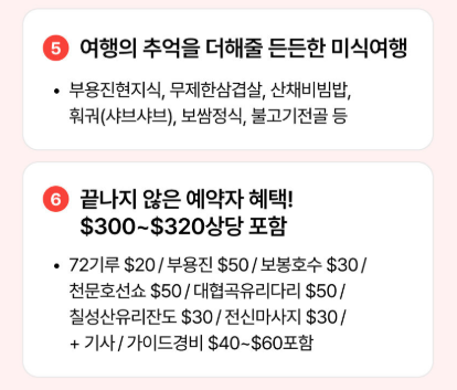 01. $300~$320 상당 일정 포함