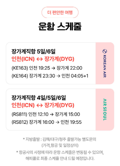 (KE164) 23:30 장가계 출발 ▶ 04:05 인천 도착