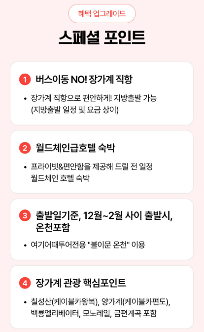 - 출발일 기준, 12월~2월 사이 출발 시, 온천포함