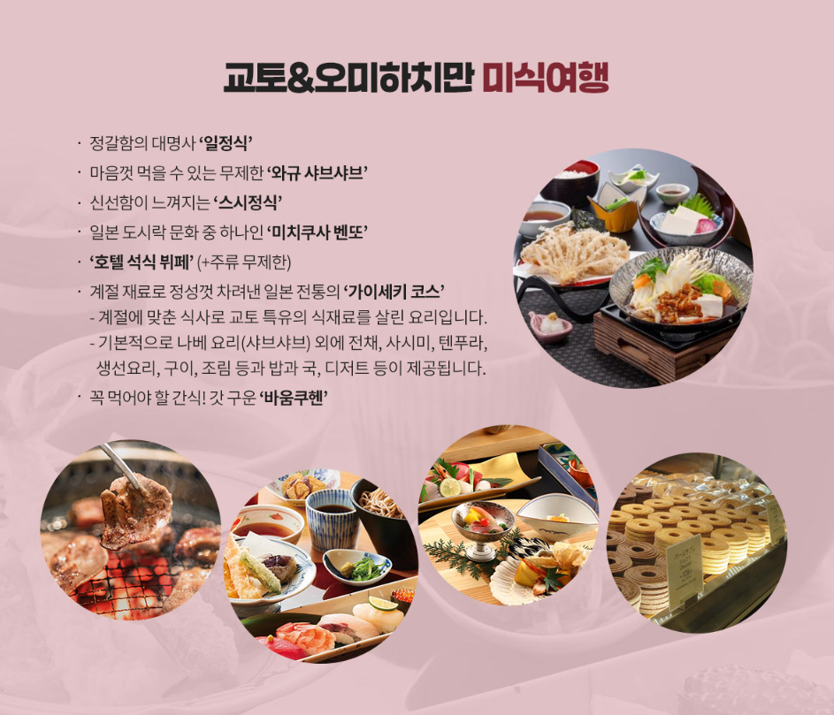 ◈ [맛있는 미식여행] 교토/오사카 여행을 더욱 즐겁게 할 6大 미식(호텔석식 2회) 포함 전 일정 식사 제공