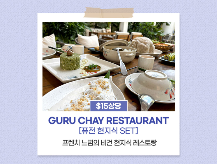 - (★비.교.필.수) 프렌치 느낌의 비건 현지식 레스토랑 "GURU CHAY RESTAURANT" [퓨전 현지식 SET] [$15상당]