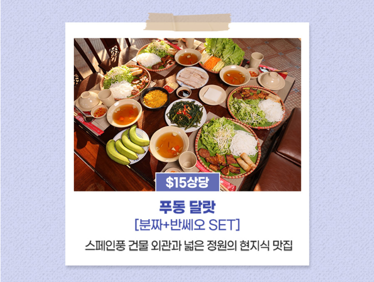 - (★비.교.필.수) 스페인풍 건물 외관과 넓은 정원이 갖춰진 현지식 맛집 "푸동 달랏" [분짜+반쎄오 SET] [$15상당]