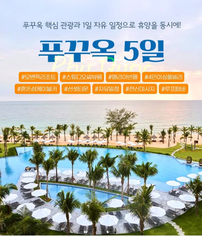 [쇼핑엔티] 자유!휴양!관광!힐링! 푸꾸옥 5일(5성급 씨뷰룸up+혼똔섬)