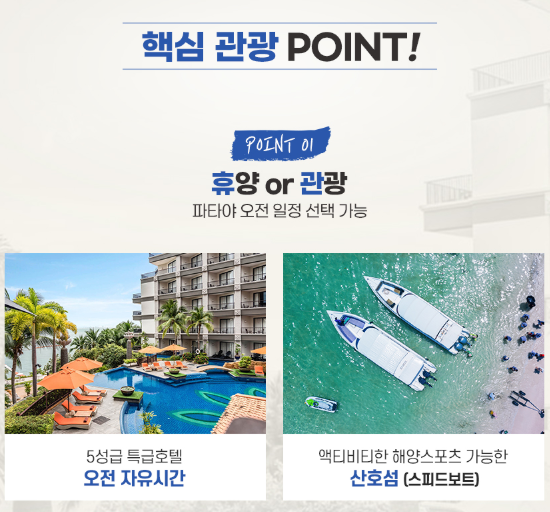 ① [파타야의 낮] 선택 일정 ★ [5성급 리조트 오전 자유시간]VS[액티비티한 해양 스포츠 가능한 산호섬]