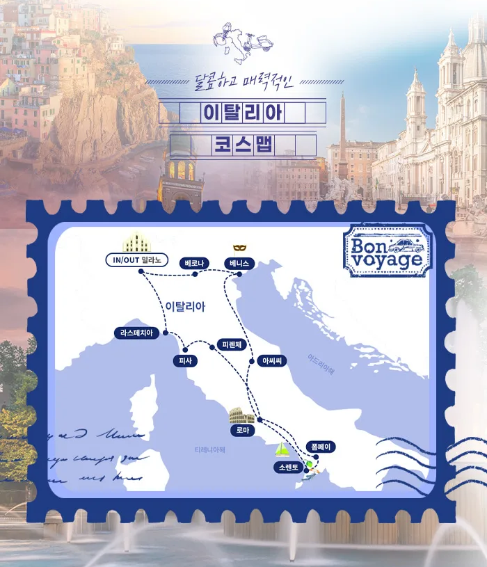 ☑ 이탈리아 주요 도시 밀라노, 친퀘테레, 피렌체, 로마, 폼페이, 베니스 등 모두 관광!