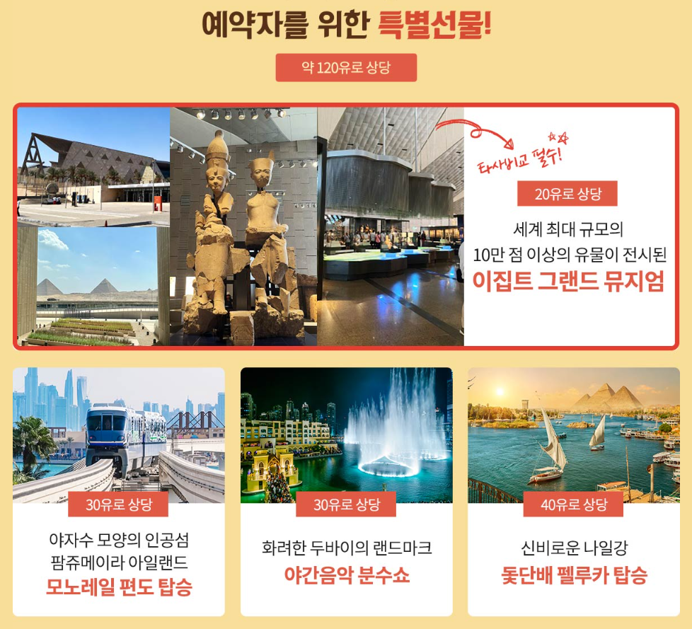 두바이&아부다비&이집트일주 10일[하모니]/국적기탑승/특급호텔/나일강크루즈/미식여행