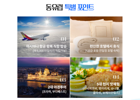01. 아시아나항공 왕복 직항 탑승 (약 8,000마일리지 적립가능)