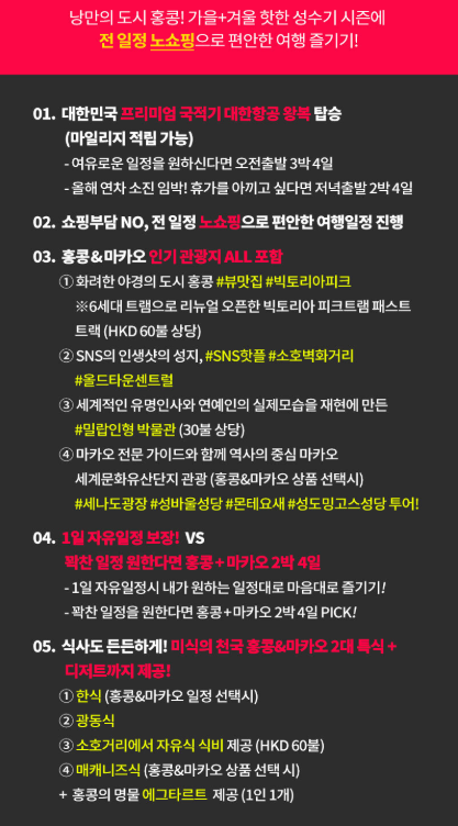 04. 1일 자유일정 보장! VS 꽉찬 일정 원한다면 홍콩+마카오 2박 4일