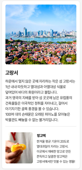 - 유럽풍의 건물과 수려한 경관의 해상화원 고랑서 섬(페리)