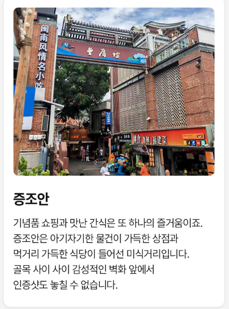 - 아기자기한 기념품을 파는 가게와 먹거리 가득한 식당이 늘어선 미식거리 증조안