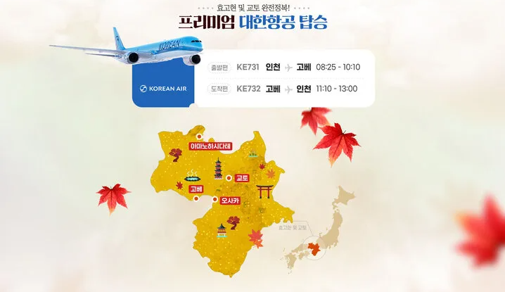 [출발편] 인천 출발 (KE731) 08:25 - 10:10 고베 도착