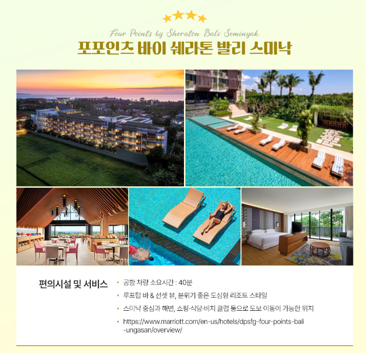 - 포포인츠 쉐라톤 스미냑 : 3박 29만원, 4박 39만원