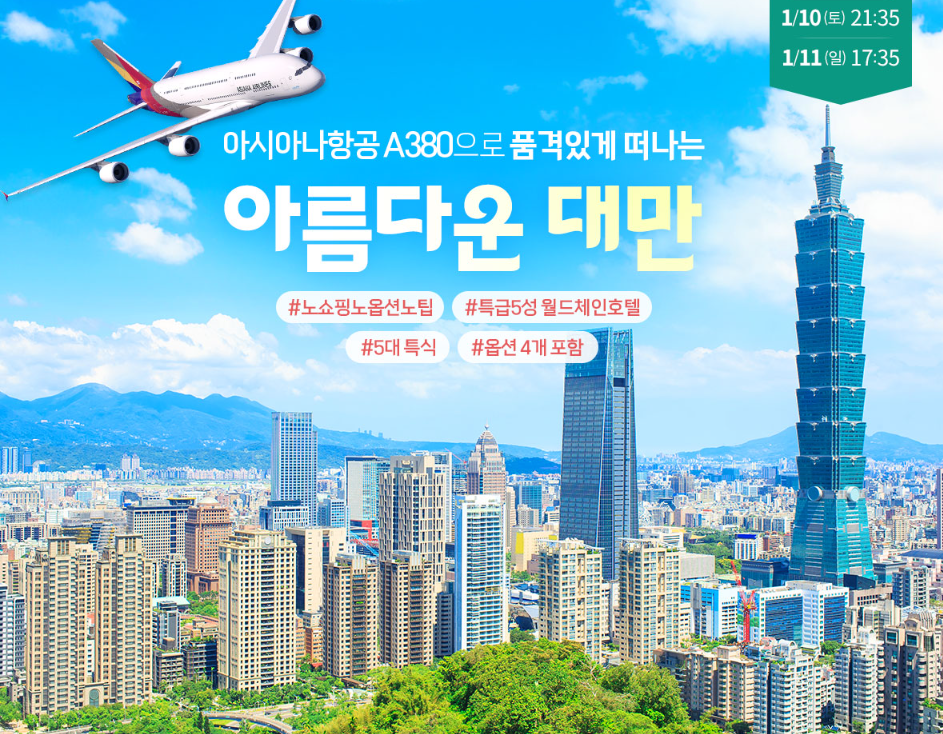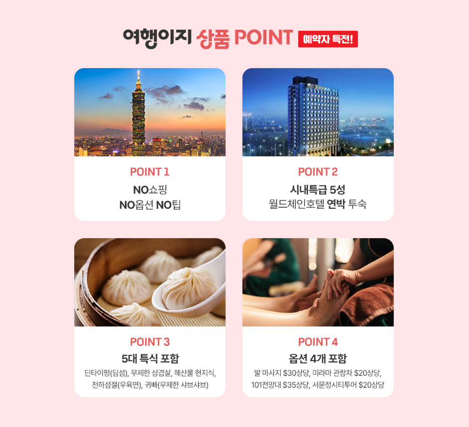 대만 3박4일 타이페이 우라이 노팁!노쇼핑!노옵션! 특급5성 월드체인호텔 // 5대 특식 // 옵션 4개 포함