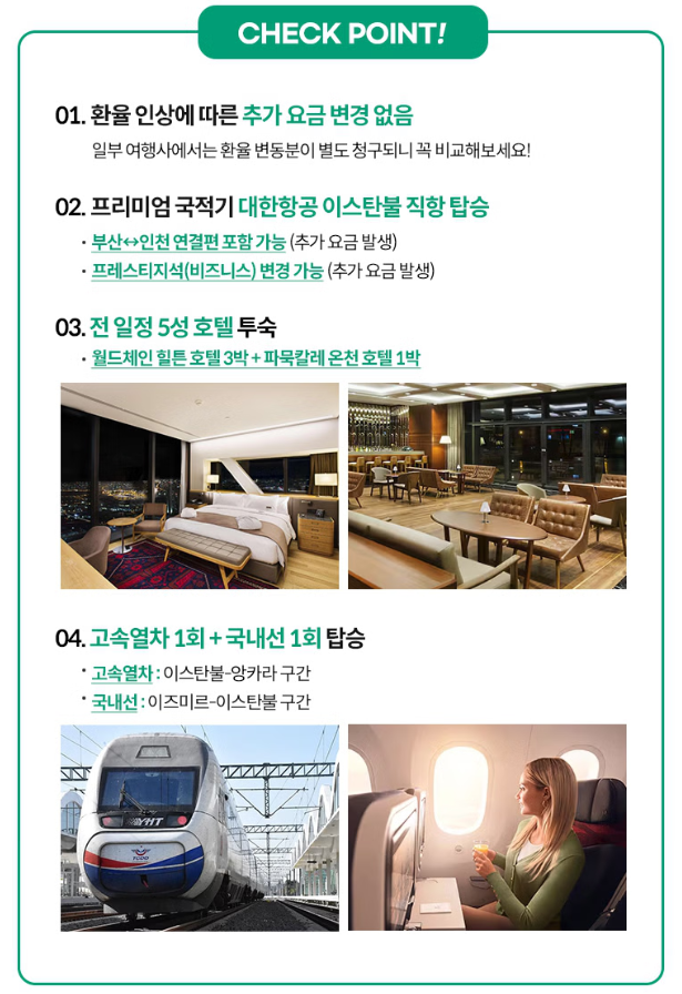- 일부 여행사에서는 환율 변동분이 별도 청구되니 꼭 비교해보세요!